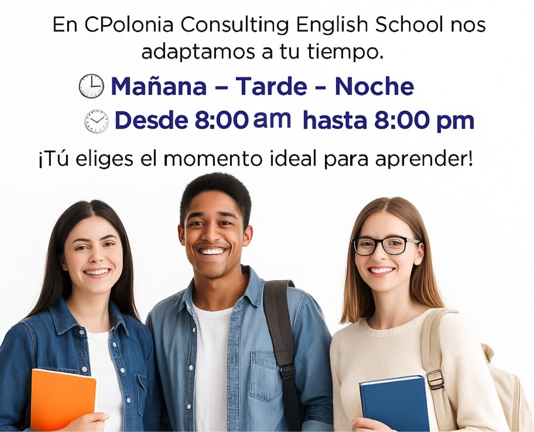 El Programa de Inglés Regular Trimestral de CPOLONIA Consulting English School está diseñado para que adolescentes y adultos desarrollen todas las habilidades del idioma inglés a través de clases dinámicas, prácticas y enfocadas en la comunicación real.